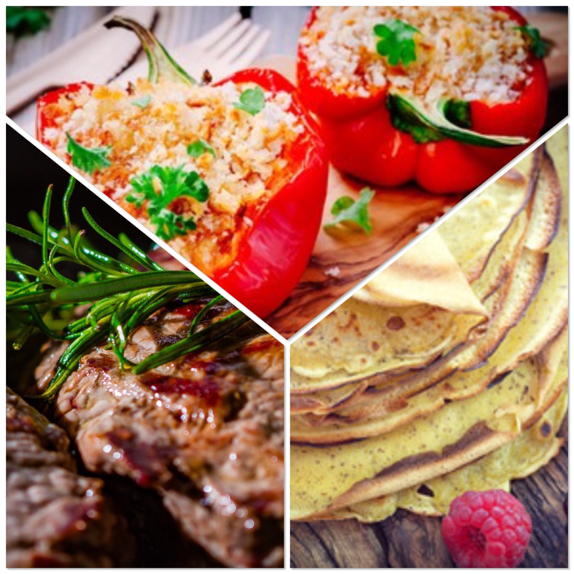 Keittoa, salaattia, täytetyt krepit..